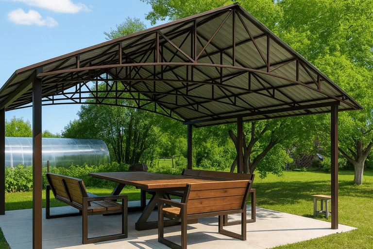 Навес из металла — универсальное решение для создания защищённого пространства на участке. Он может использоваться как укрытие для автомобиля, зона отдыха или хозяйственный навес. При правильном подходе к проектированию и монтажу конструкция прослужит десятилетия.
