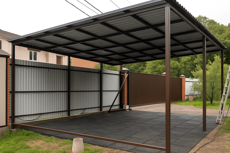 Навесы из металлопрофиля отличаются прочностью, долговечностью и простотой монтажа. Для обеспечения надёжной эксплуатации конструкция подбирается с учётом квадратуры участка, типа основания и предполагаемой нагрузки.