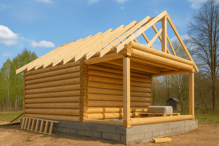 Этапы строительства крыши бани